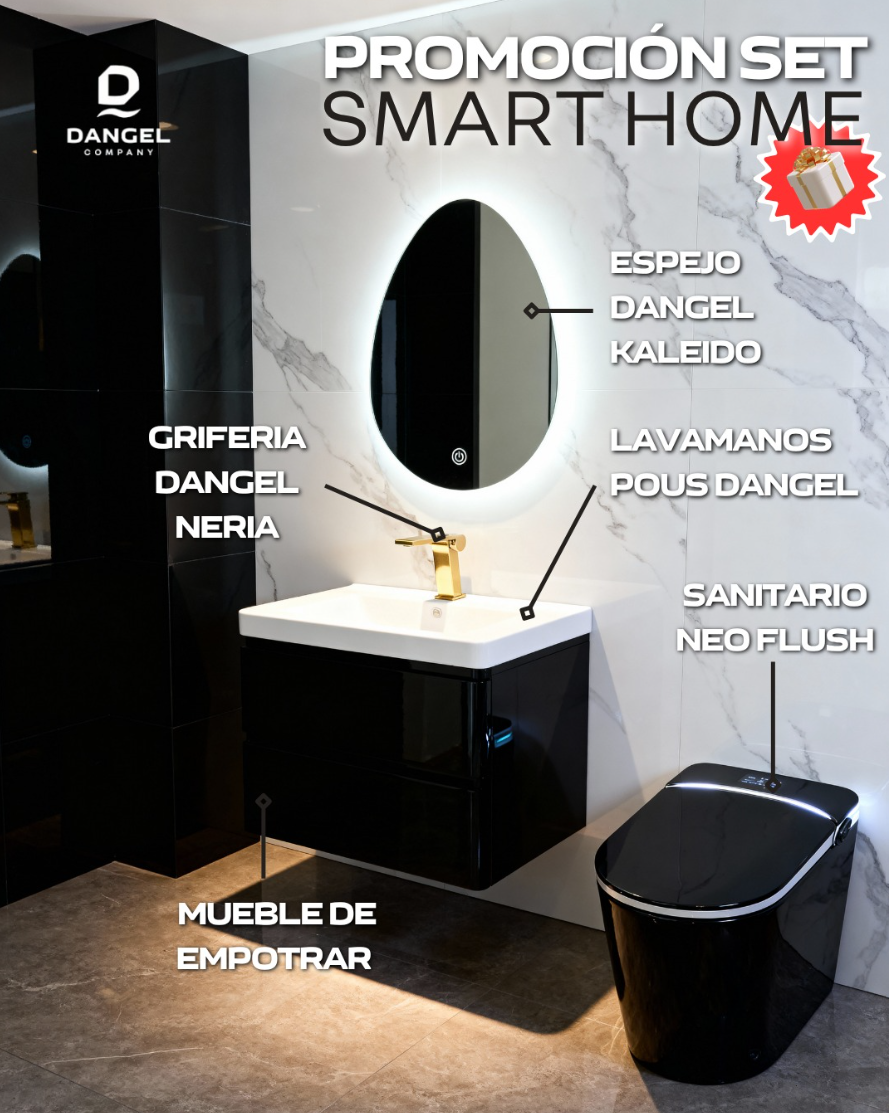 Transforma tu baño con el Set Smart Home de Dangel, una combinación perfecta de diseño, lujo y tecnología.