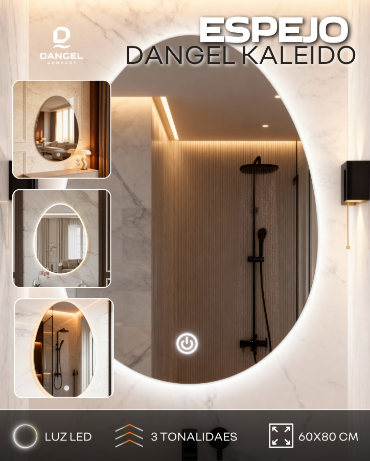 ✅ Espejo Dangel Kaleido – con luz LED táctil y diseño elíptico de última generación