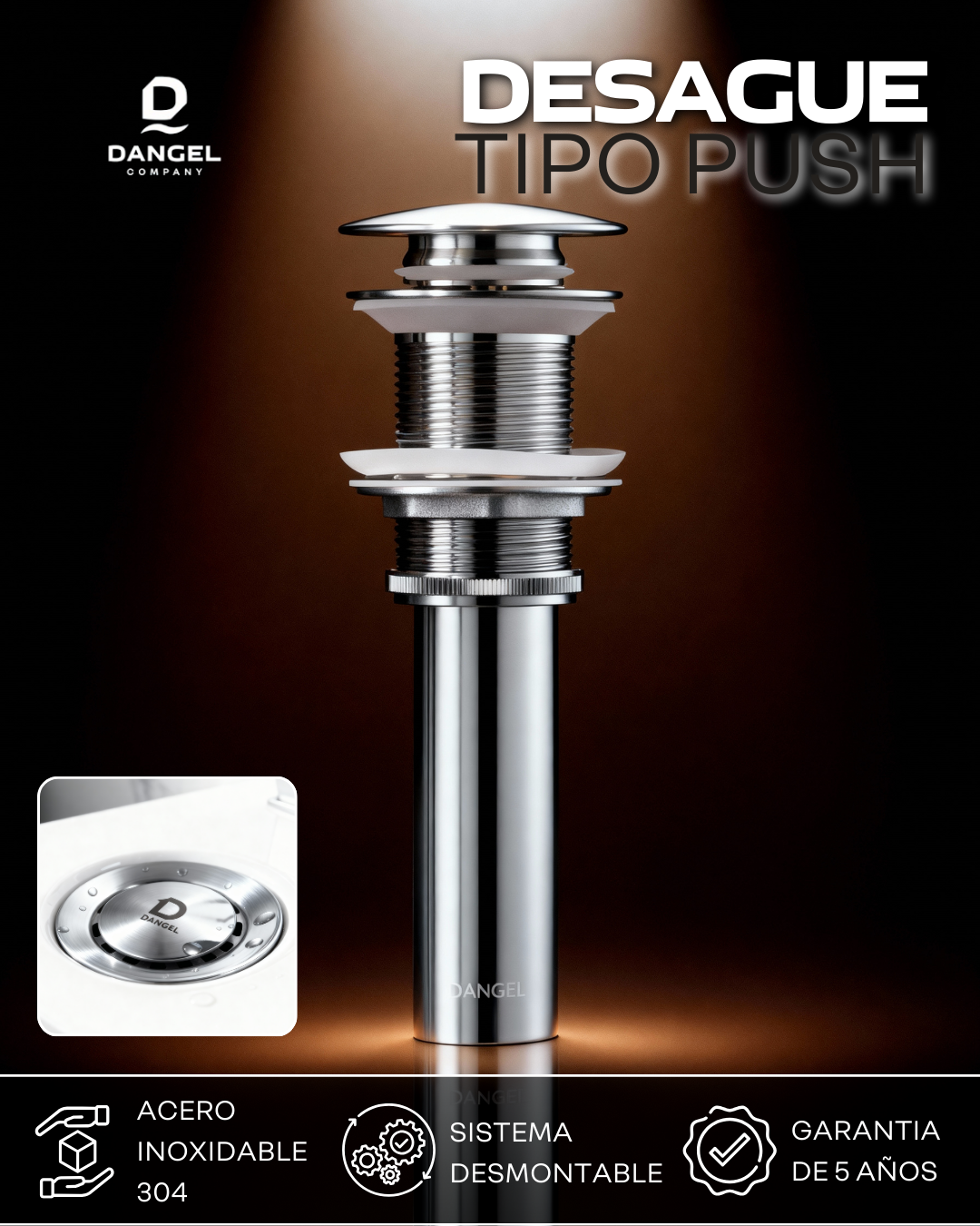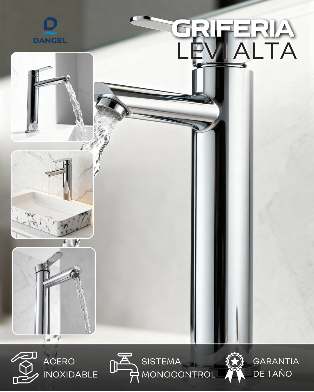 ✅ Grifería Abner baja – cromo brillante, cuerpo en bronce macizo y sistema monocontrol ultra ahorrador